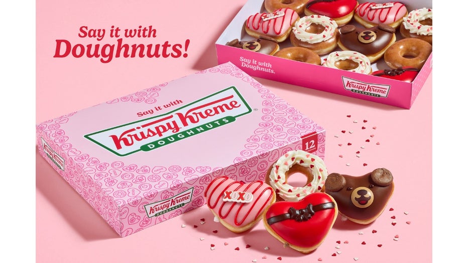 Participating Krispy Kreme shops throughout the U.S. will feature Valentine’s Day doughnuts: