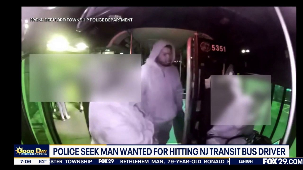 DEPTFORD, N.J. - Police in Gloucester County are searching for a man who they say was captured on video hitting a NJ Transit bus driver.