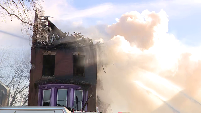 Water freezes as firefighters battle blaze in North Philadelphia