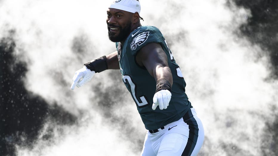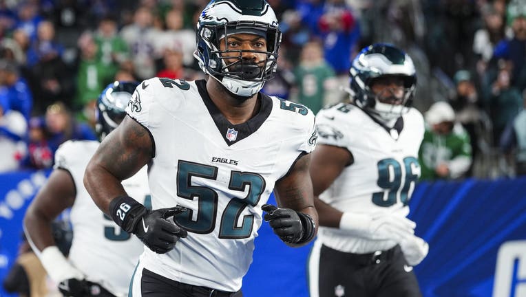 PHILADELPHIA, PENNSYLVANIA - OCTOBER 5: Za'Darius Smith #52 of the Philadelphia Eagles runs onto the field prior to an NFL football game against the Denver Broncos at Lincoln Financial Field on October 5, 2025 in Philadelphia, Pennsylvania. (Photo by