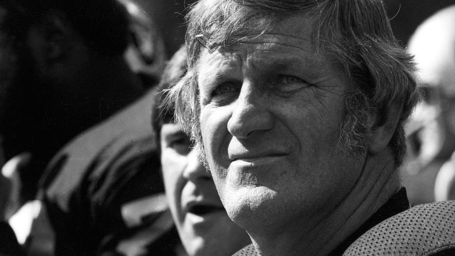 CLEVELAND, OHIO - OCTOBER 06: George Blanda, Oakland Raiders, who played 26 seasons in the NFL and AFL as a quarterback and place kicker scored a total of 8 points during the Raiders defeating the Cleveland Browns 40-24 on October 6, 1974 at Clevelan