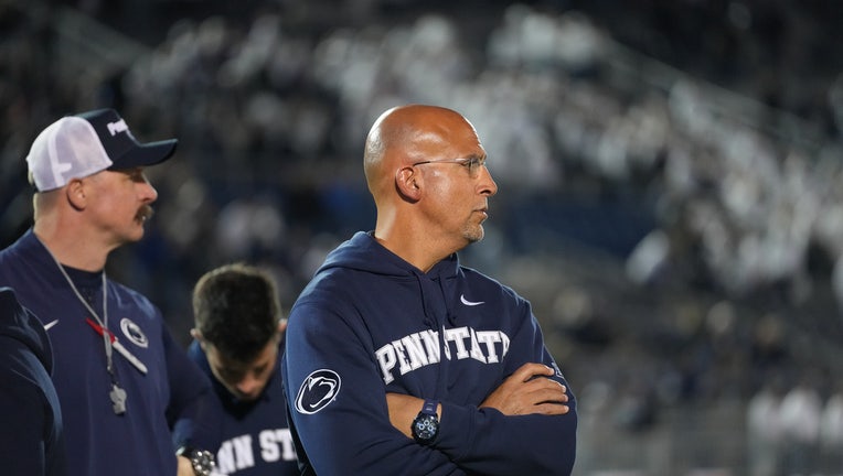 Penn State's head coach James Franklin reacts following an NCAA college football game against Northwestern, Saturday, Oct. 11, 2025, in State College, Pa. (AP Photo/Sam Balkansky)