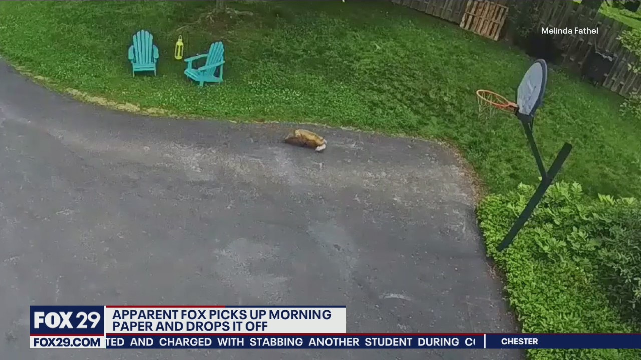 A friendly fox in Delaware County, Pennsylvania fetched a family's newspaper and brought it up the driveway.
