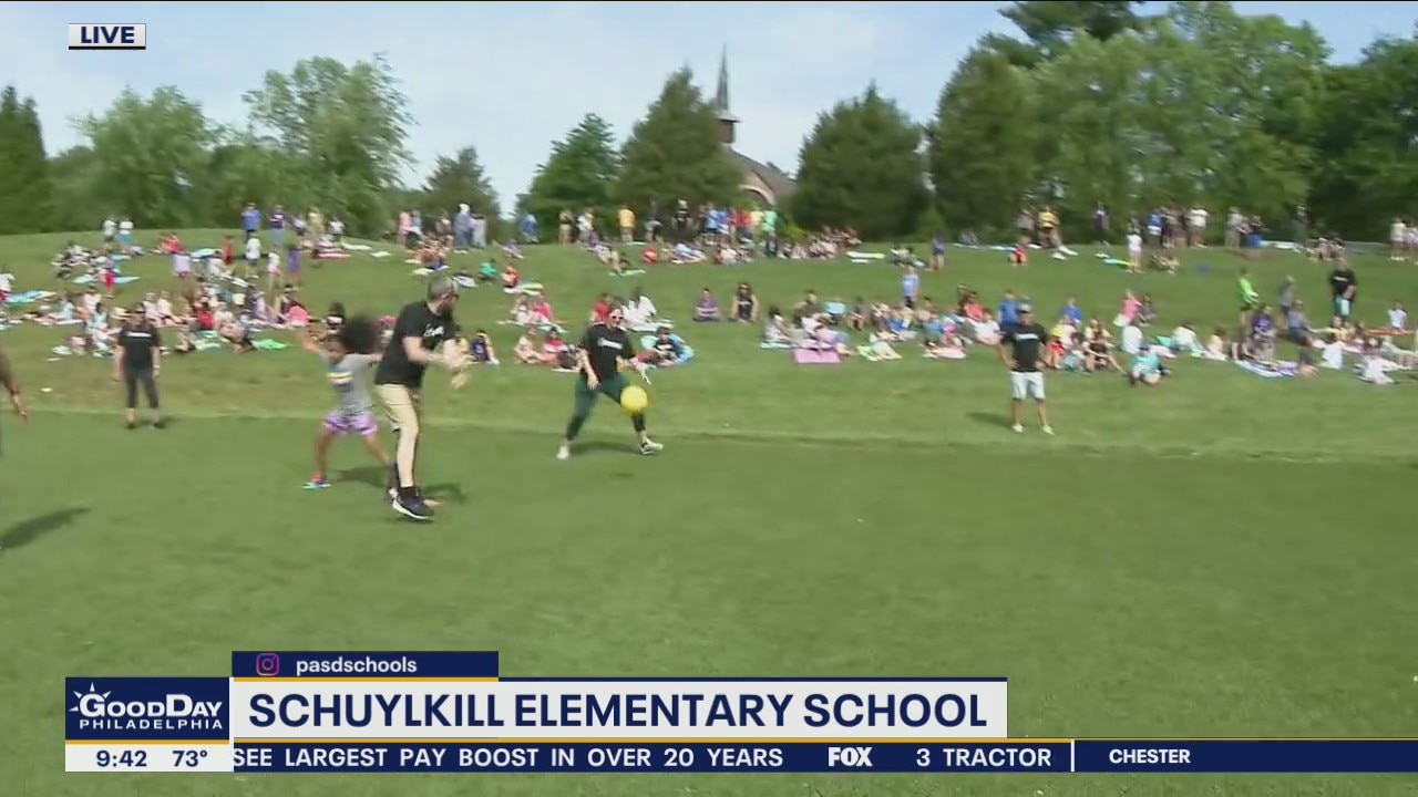 Schuylkill Elementary School hosts kickball game between fifth grade students and staff.