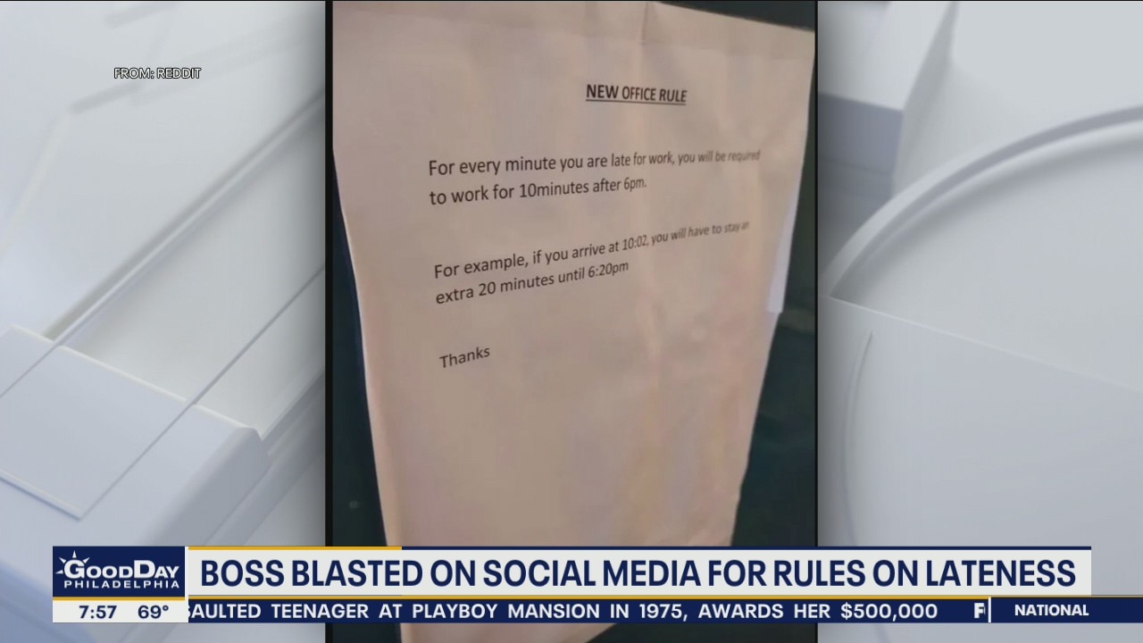 A boss is being blasted online for new rule that punishes employees for being one minute late.