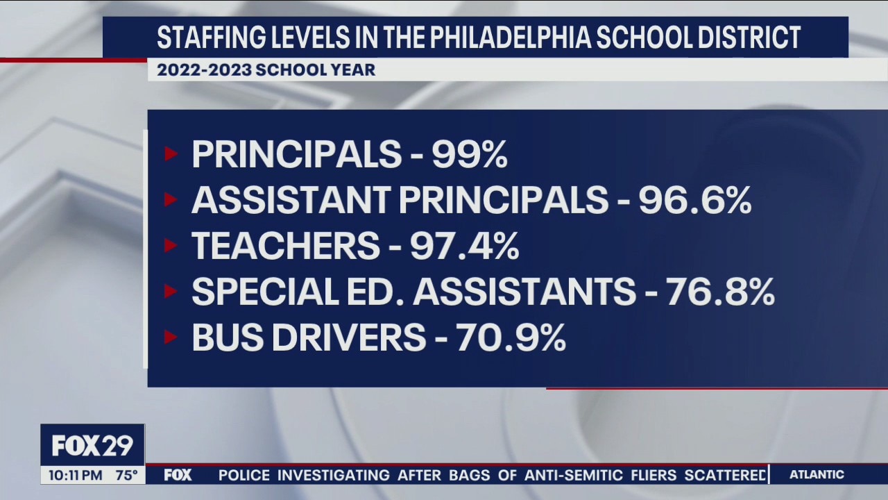 The School District of Philadelphia told FOX 29 it is 97% staffed for the upcoming school year and still actively recruiting hiring non-instructional roles. Data provided by the district showed a staffing percentage about 95% for positions including principal, vice principal and teacher.