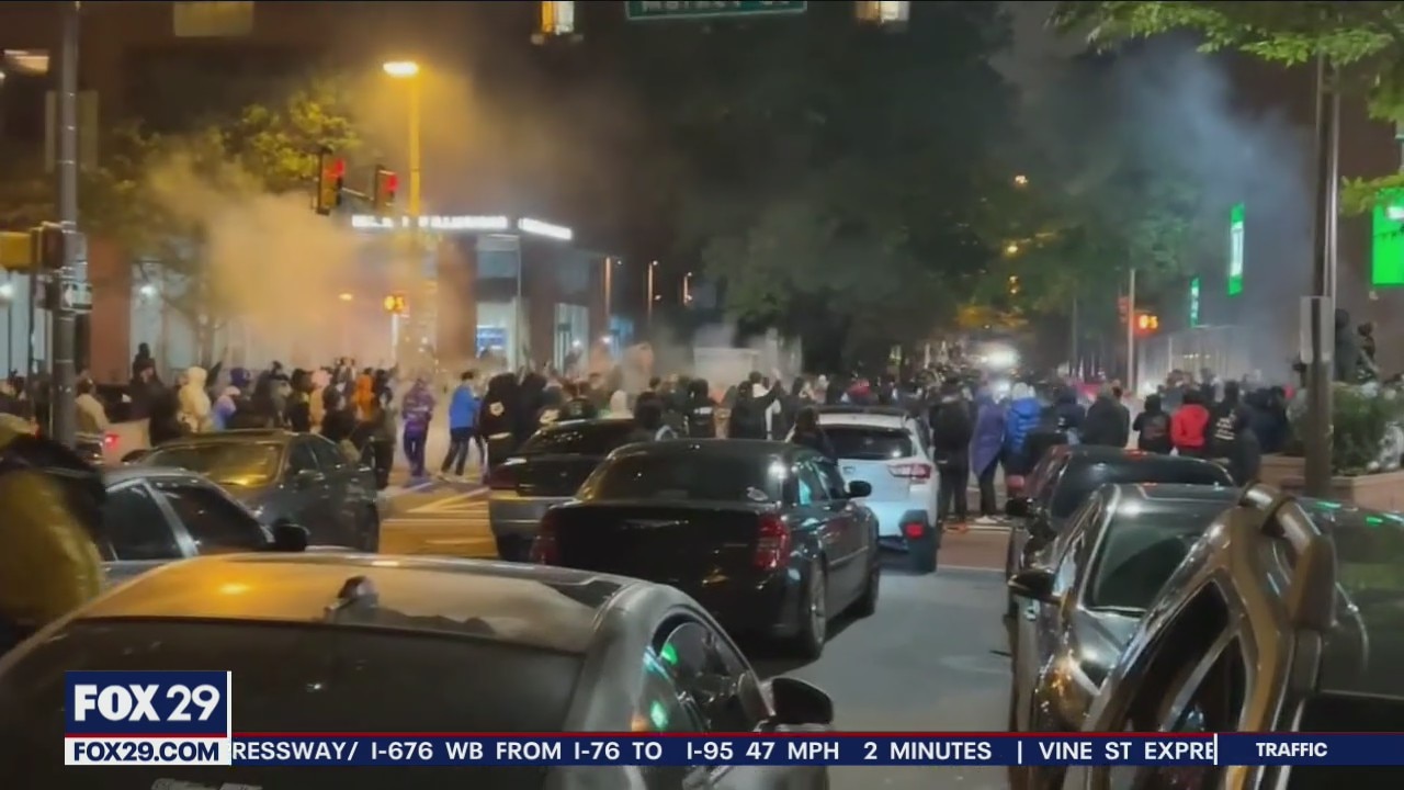 Illegal donuts, burnouts, fireworks erupt as hundreds gather on Old City streets
