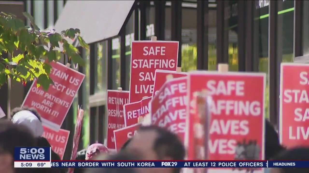 Temple University Hospital nurses hold rally in Center City in advance of possible strike