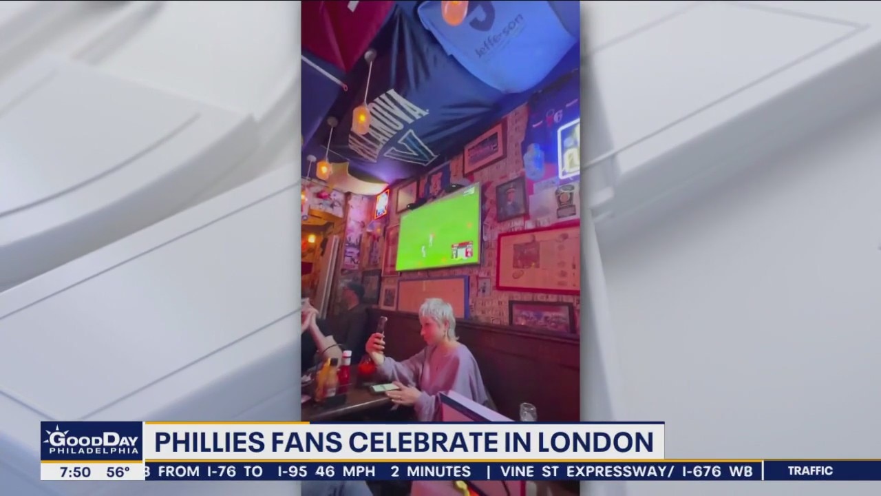 Phillies fans erupt with excitement in London bar as Phillies head to World Series
