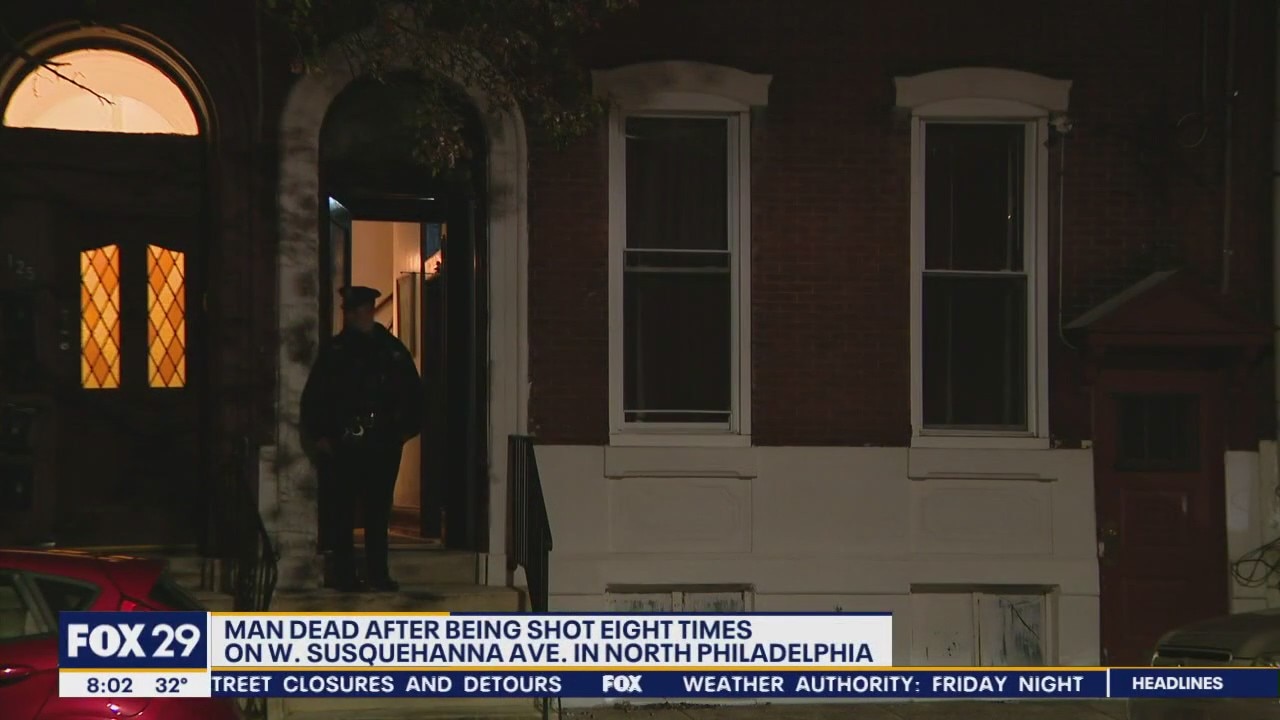 Philadelphia police are investigating a shooting that left a man with 8 fatal gunshots Saturday morning.