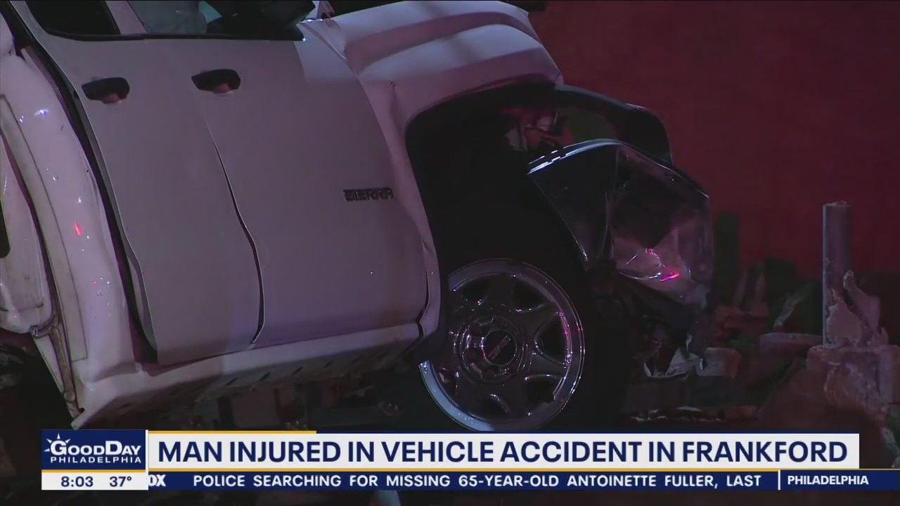 Man injured after crashing car into parked car, home in Frankford