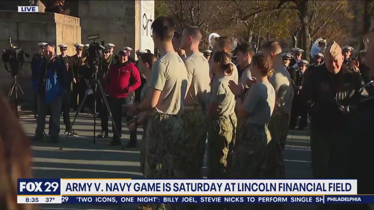 FOX 29's Jenn Frederick is at the Rocky steps at the Art Museum for the start of competitions between the Army and the Navy ahead of Saturday's game at the Linc.