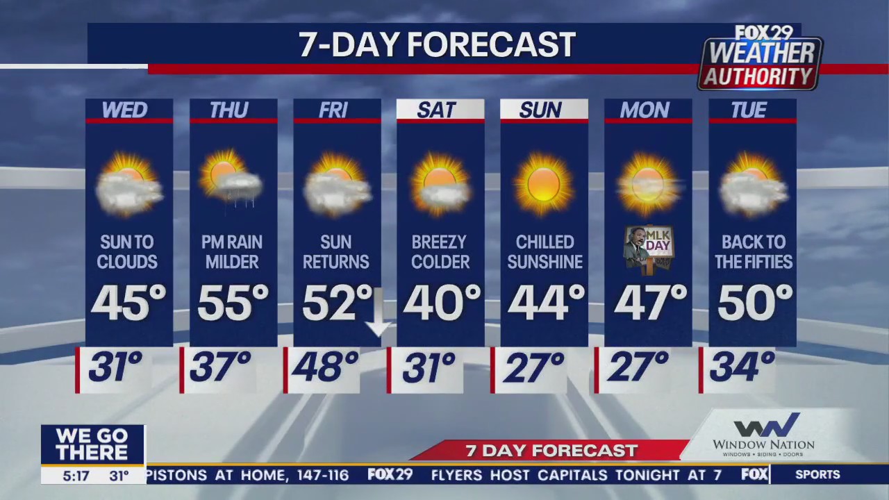 Sunny Wednesday turns to clouds ahead of another rainy Thursday.