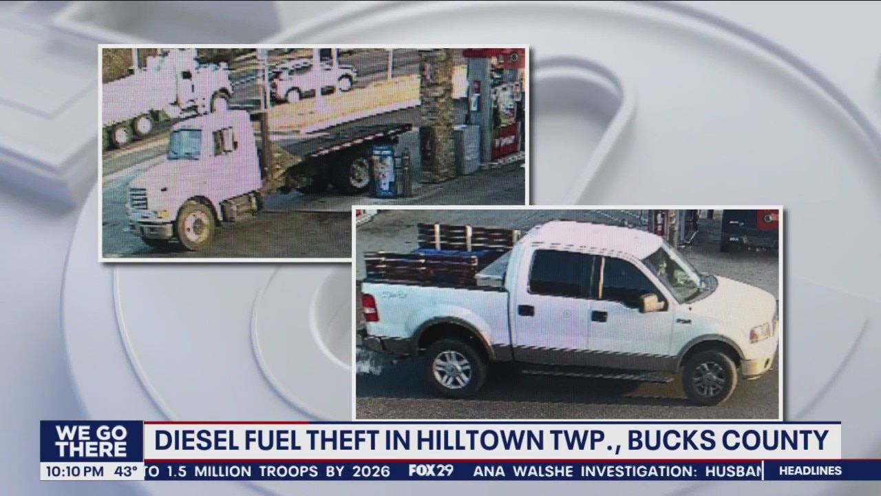 A diesel fuel theft in Bucks County totaled more than $3,000, and now police are looking for the drivers of two white trucks they claim to be responsible.