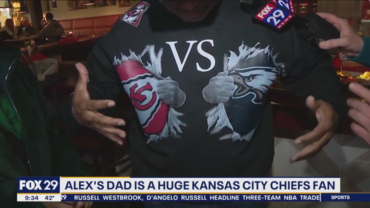FOX 29's Alex Holley and her father, a major Kansas City Chiefs fan, compete to see who has better sports apparel.