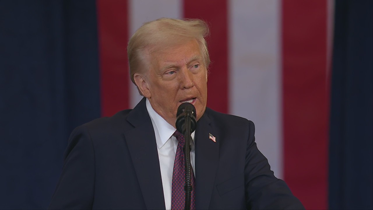 President Donald Trump delivers his inaugural address from inside the Capitol Rotunda on Jan. 20, 2025.