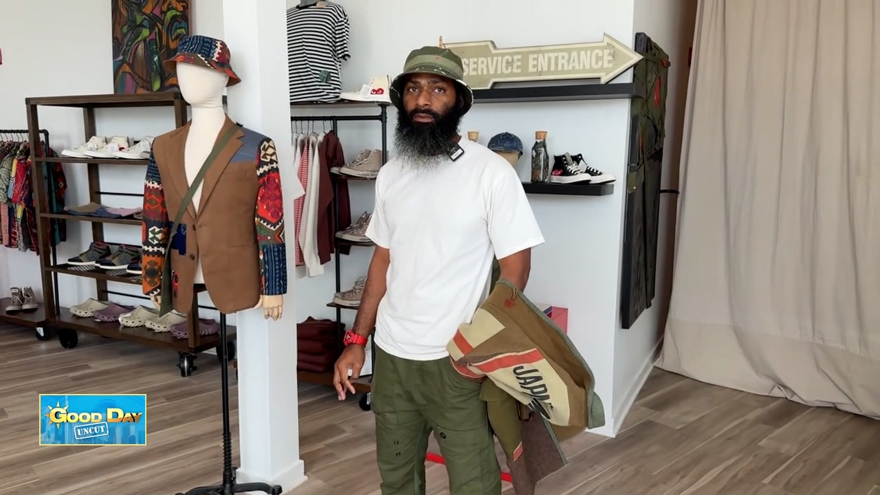 Hank Flynn hits the streets and stops by the clothing shop of Hamed Holloman. Hamed specializes in designing and making unique clothing items, art and more from interestingly sourced materials.