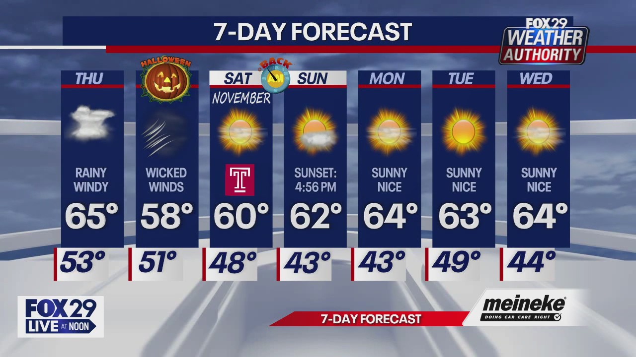 Loading Video… This browser does not support the Video element. Weather Authority: Thursday update FOX 29's Sue Serio has your Thursday forecast. Posted October 30, 2025 12:55pm EDT