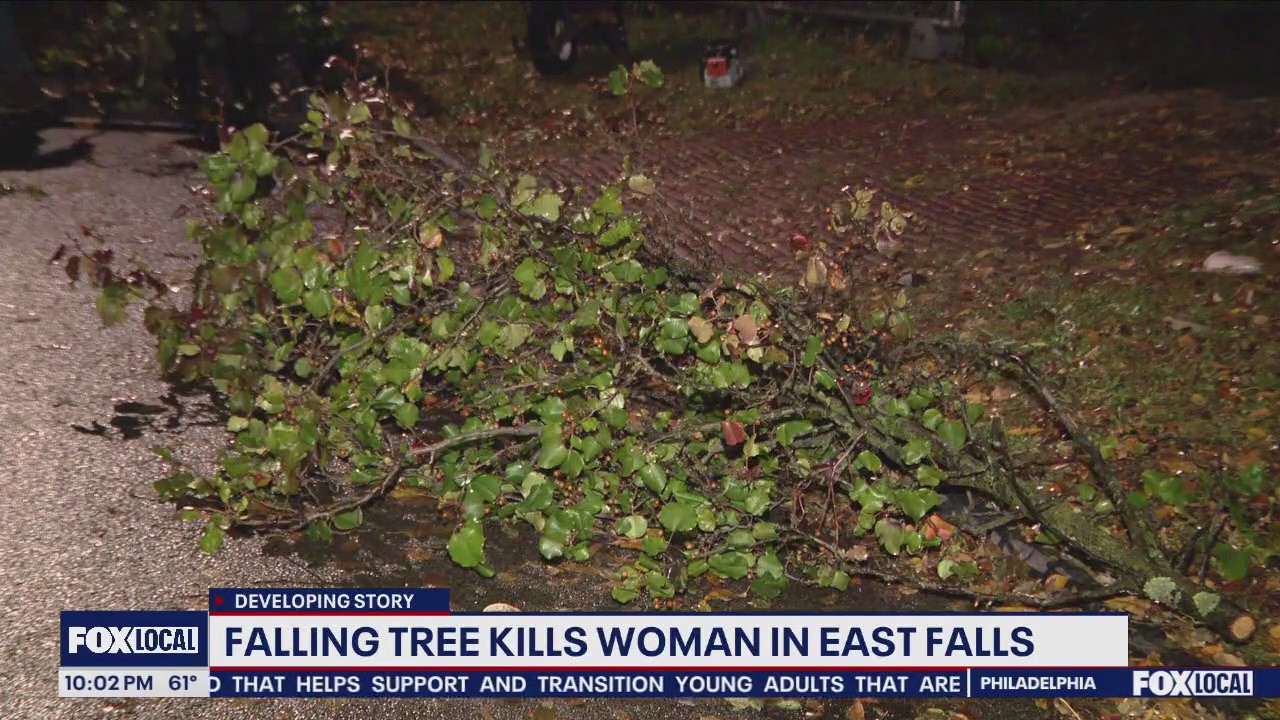 A 44-year-old woman has died after officials say a tree fell on her car in Philly's East Falls neighborhood Thursday.