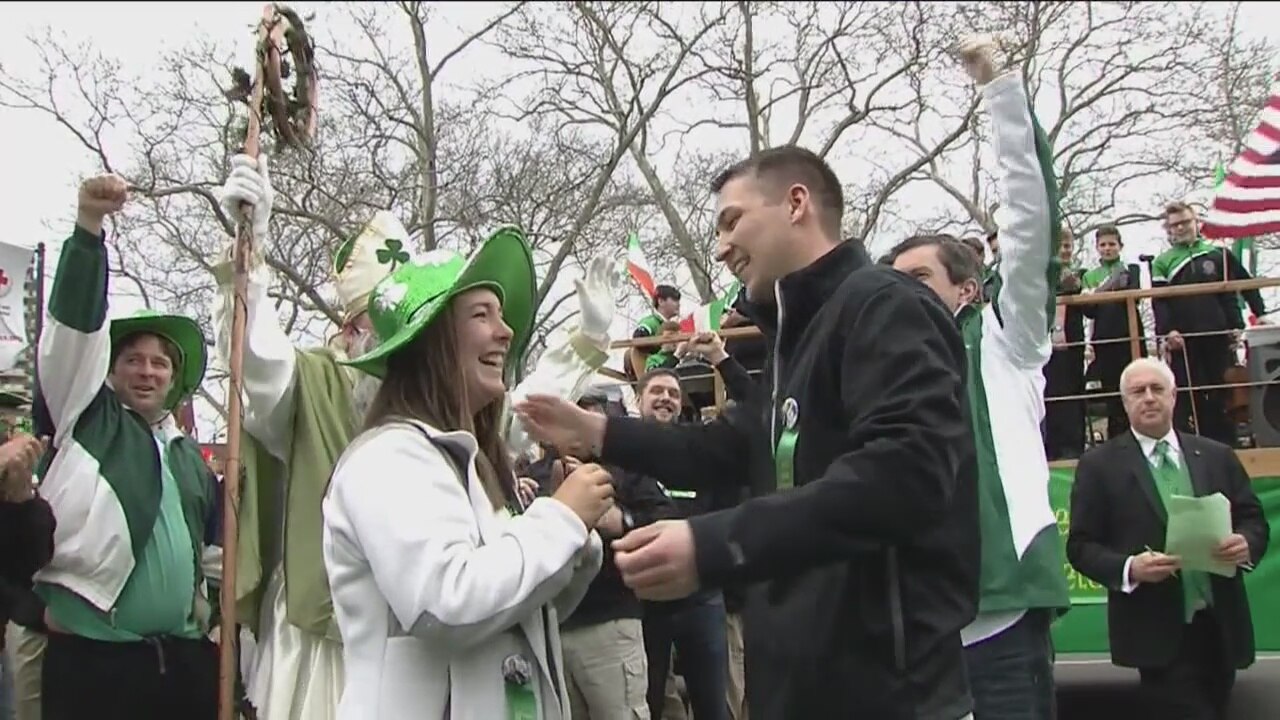 Marriage proposal at the St. Patrick's Day Parade