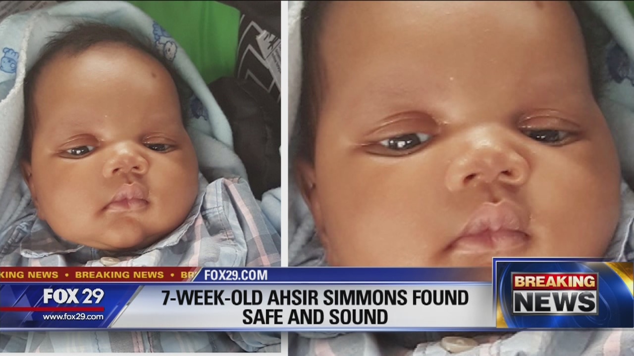 Police announced on Thursday night that 7-week-old Ahsir Simmons allegedly abducted from the King of Prussia Mall has been found safe.