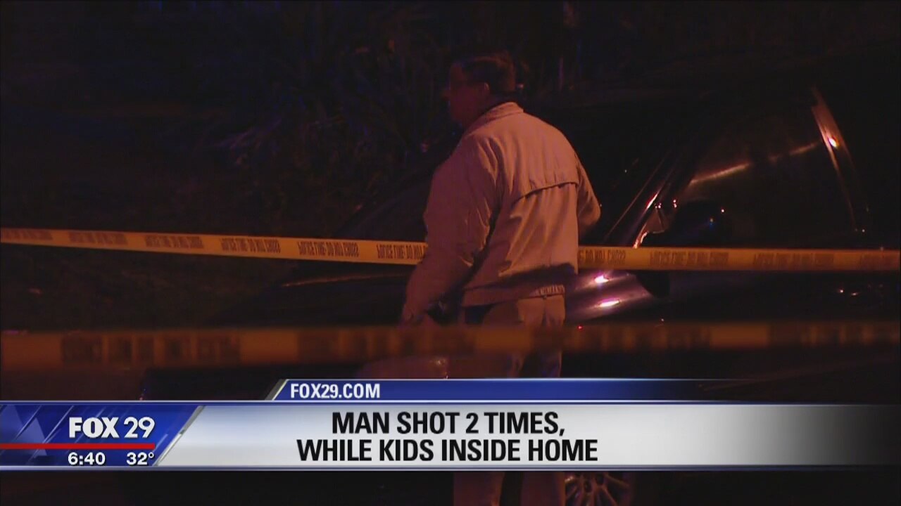 One man was rushed to the hospital in stable condition after being shot twice outside a home in the city's Logan section. Police say children were inside the home at the time of the shooting.
