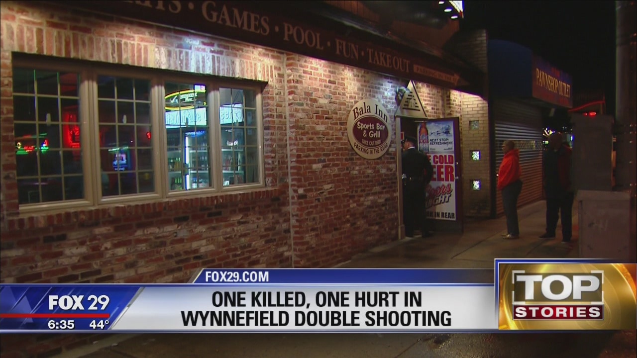 One person was killed, and another hurt in a shooting outside a bar in the city's Wynnefield section late Thursday night.
