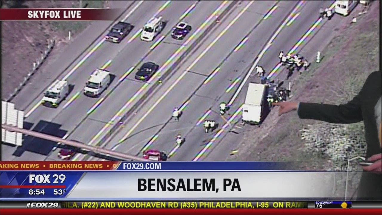 SKYFOX was over the scene of a tractor trailer accident slowing traffic on the Pennsylvania Turnpike in Bensalem Wednesday morning.