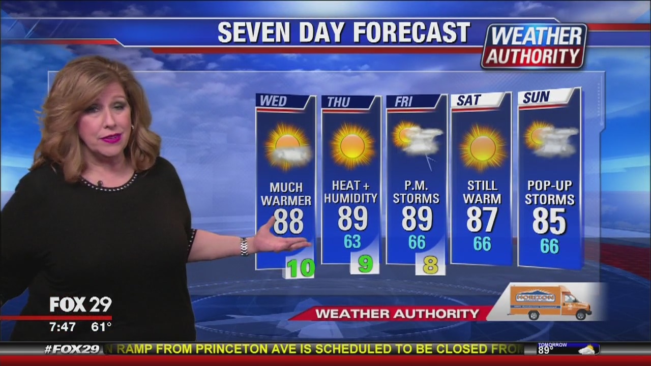 Sue Serio has the Wednesday forecast, plus the 7 day