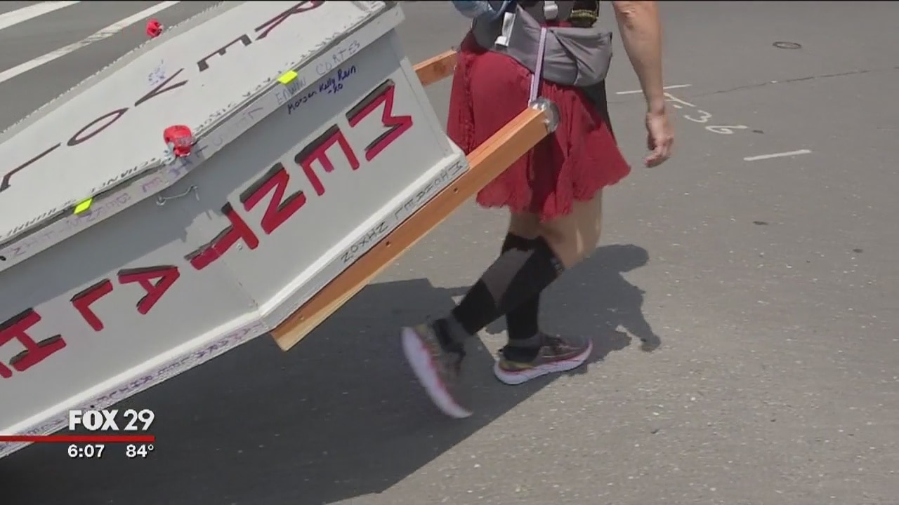 Woman pulls casket for miles for mental health awareness