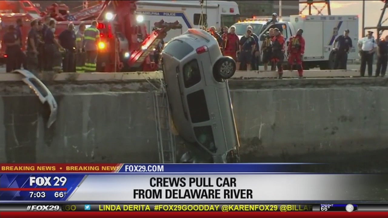 Car speeding down Oregon Avenue hits fence, goes into Delaware River