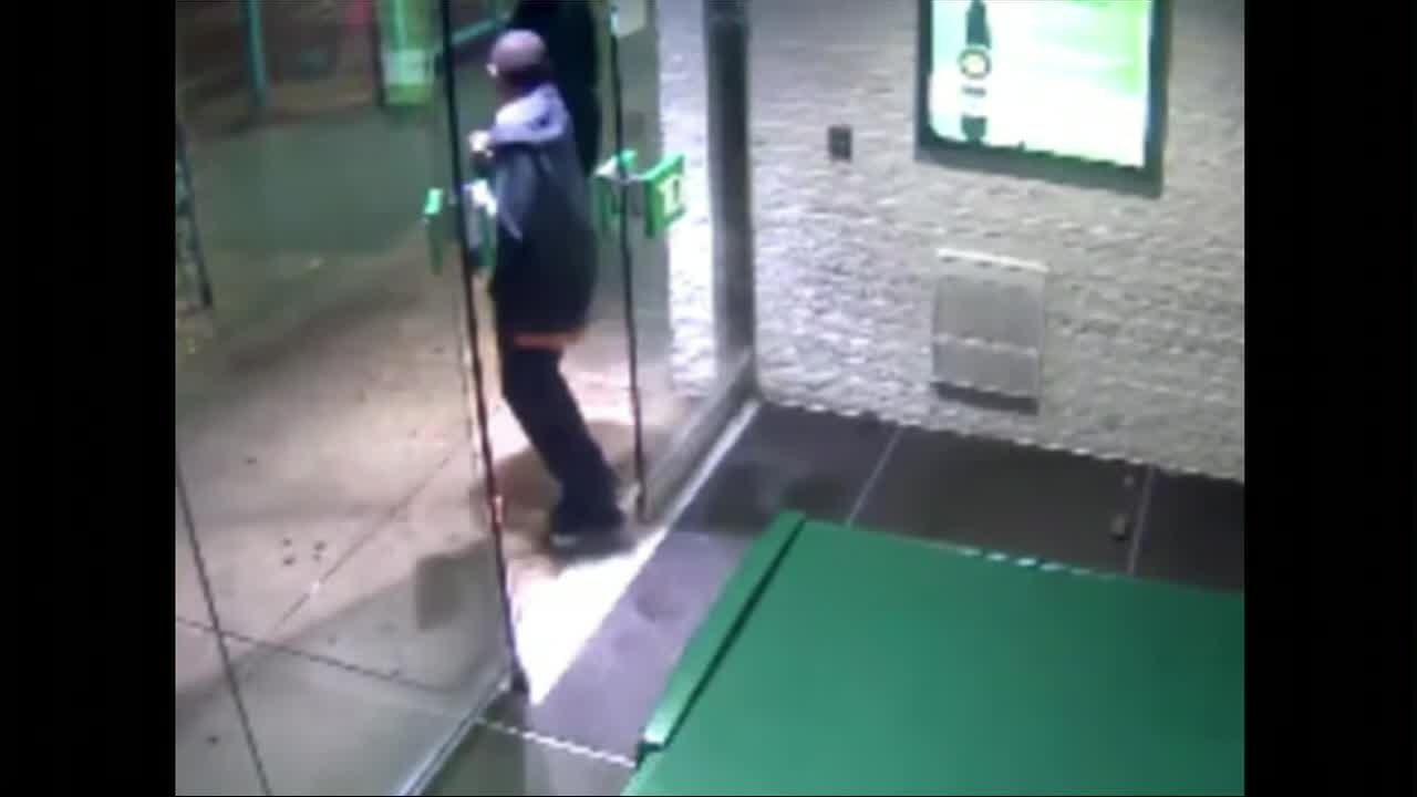 Surveillance video from inside vestibule of TD Bank in South Philadelphia