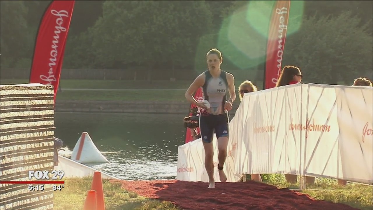 Dozens take on triathlon in West Philadelphia