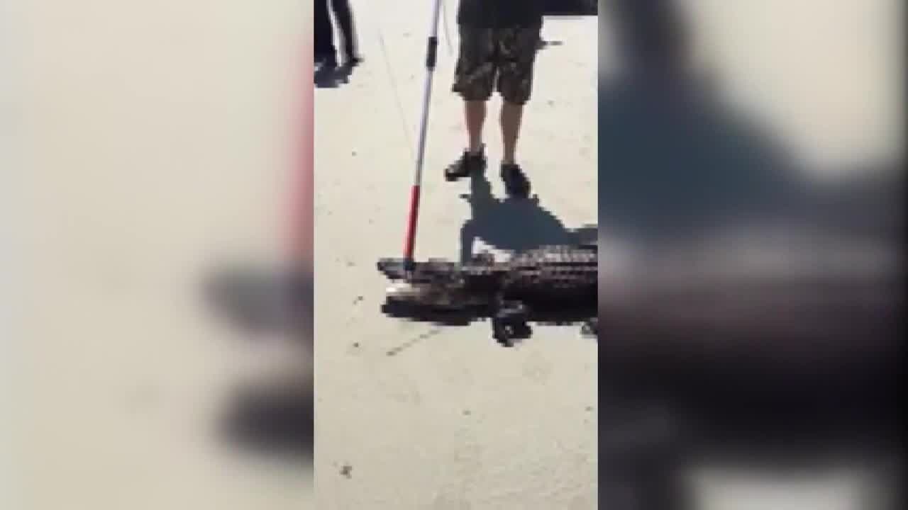 An alligator was spotted and captured on a South Carolina beach