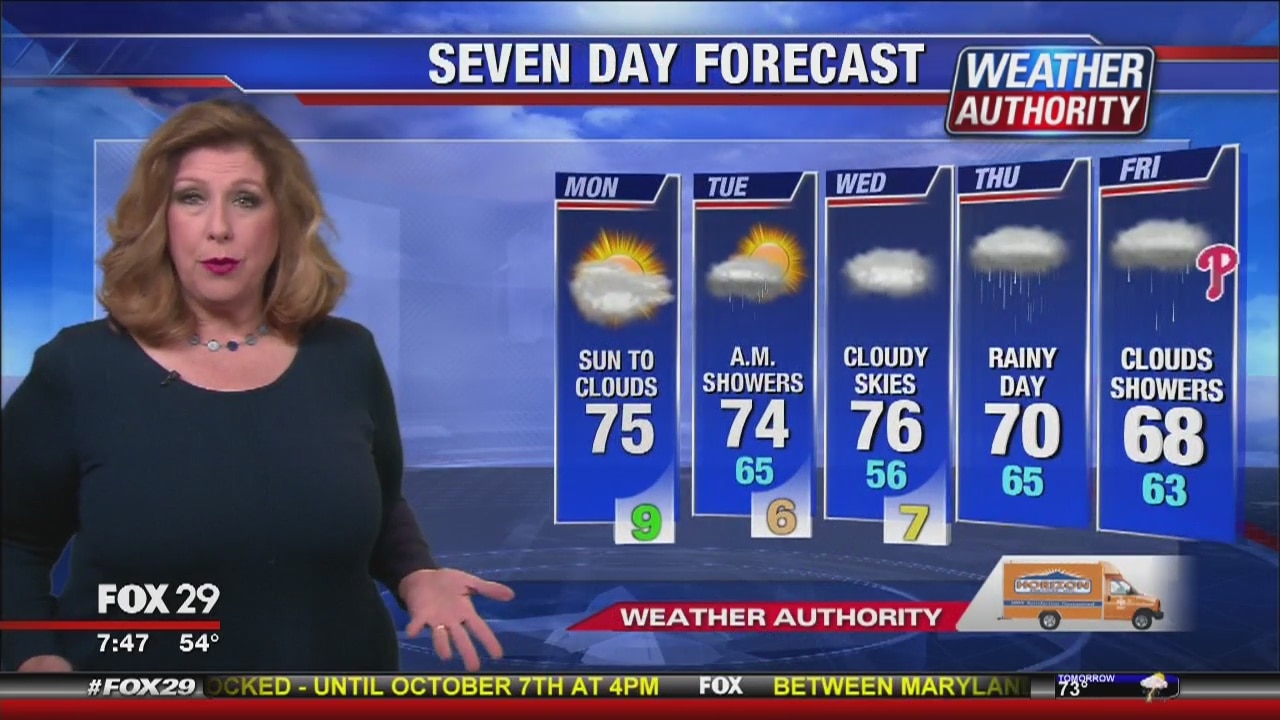 Sue Serio has the Monday forecast, plus downpours soon in the 7 day