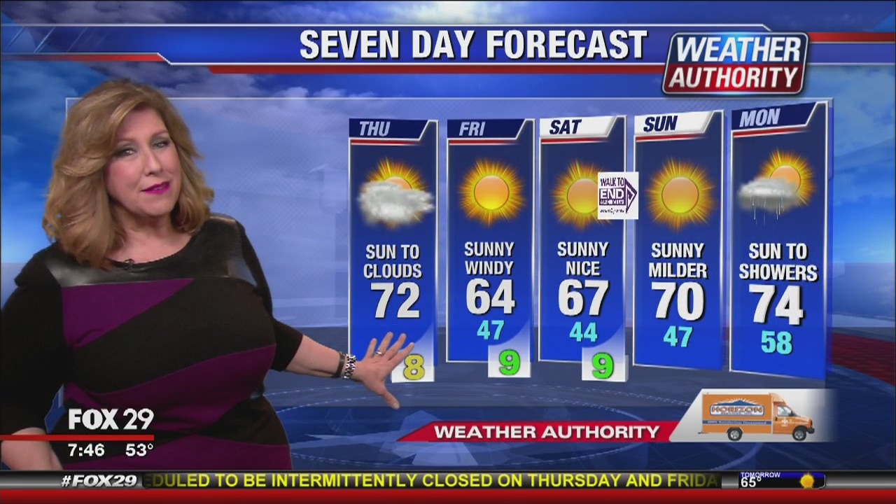 Sue Serio has the Thursday forecast, plus the 7 day