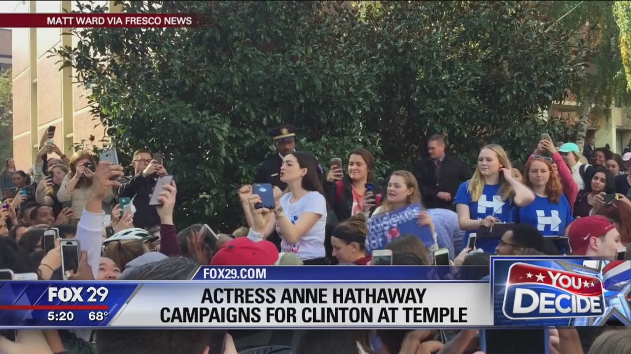 Actress Anne Hathaway campaigns for Clinton at Temple