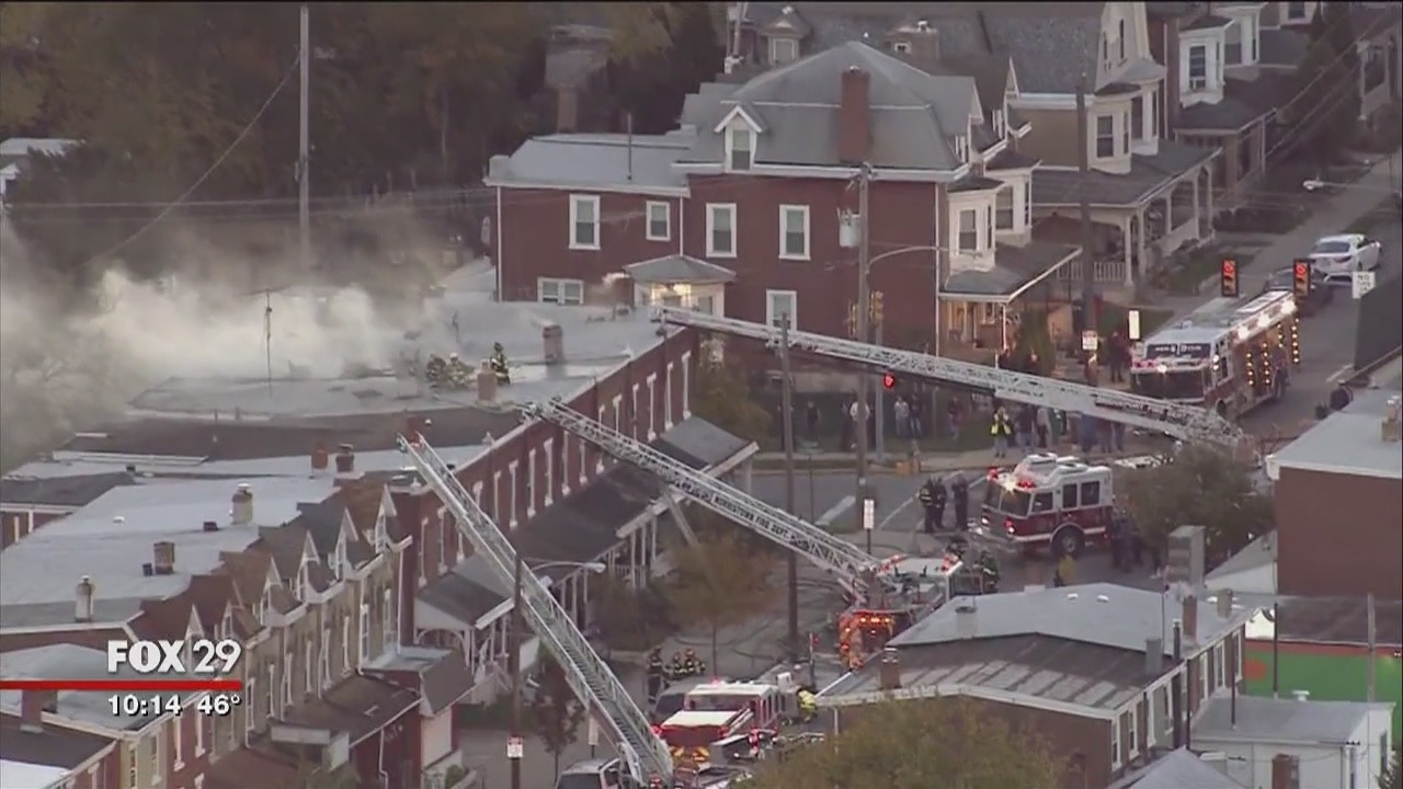"Really upset. It's horrible," said Raul Rosalis. He and other families wrapped in blankets they got from the Red Cross stood outside their burned out row homes in Norristown after a fire earlier this evening.