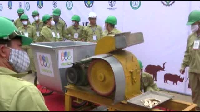 Vietnam gathered illegal animal parts in containers and ground them down, before burning them