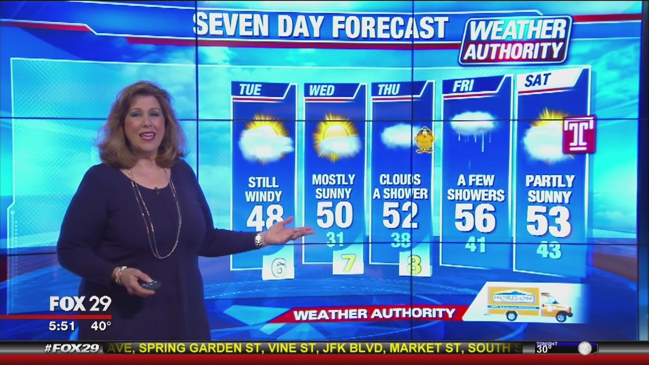 Sue Serio forecasts a dry Tuesday and Wednesday, less wind Wednesday, plus Thanksgiving weekend