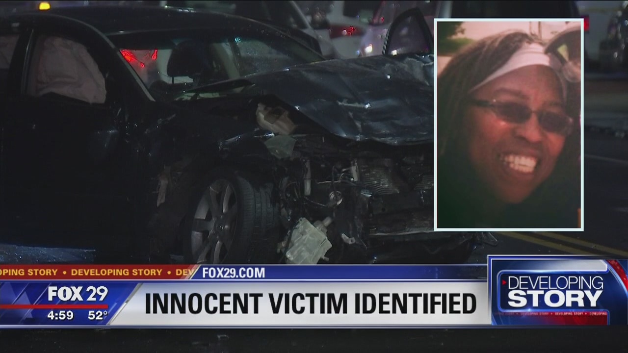Police say a gun battle between people in two cars leads to a police pursuit and an innocent woman dead.