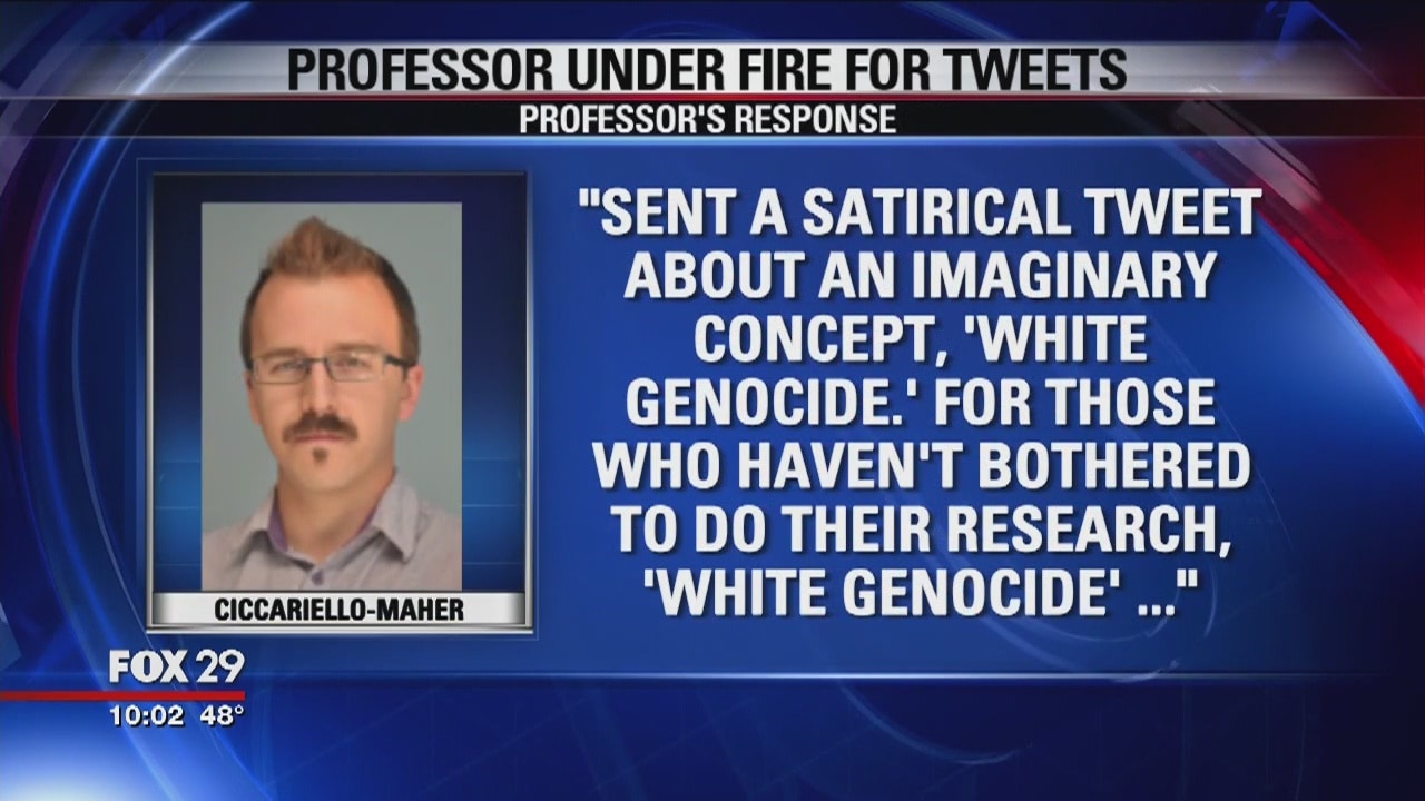 A Drexel University professor has been summoned to a meeting with school officials after he tweeted a Christmas Eve message that appeared to support "white genocide."