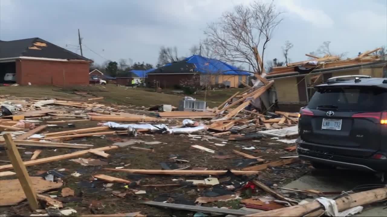 Severe storm damage in Mississippi. Tornado killed 4 there.