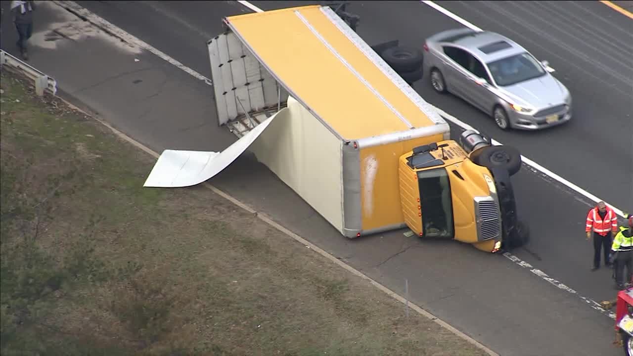 Truck flipped while trying to exit N.J. Turnpike