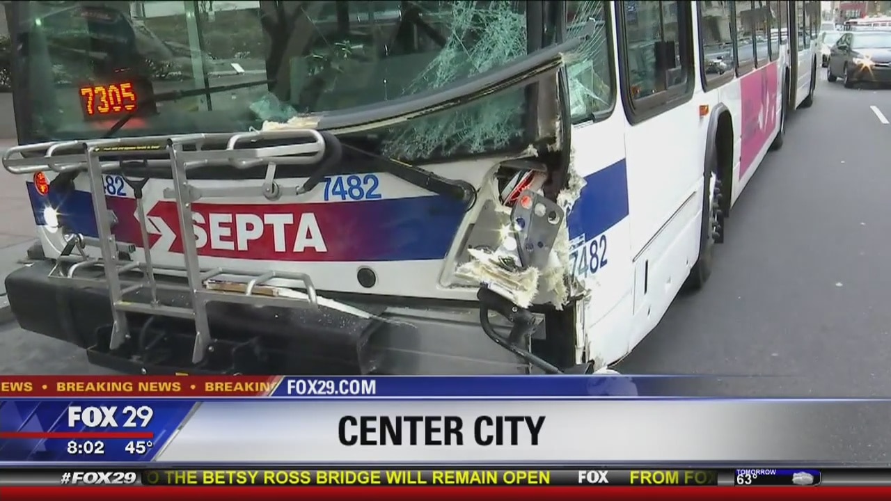 SEPTA bus, truck both damaged in crash by Philadelphia City Hall