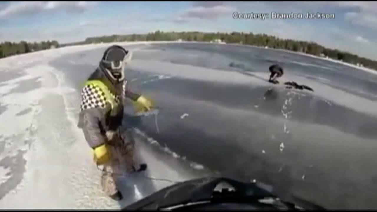 Saving a teen thrown off snowmobile, into freezing water at Maine lake
