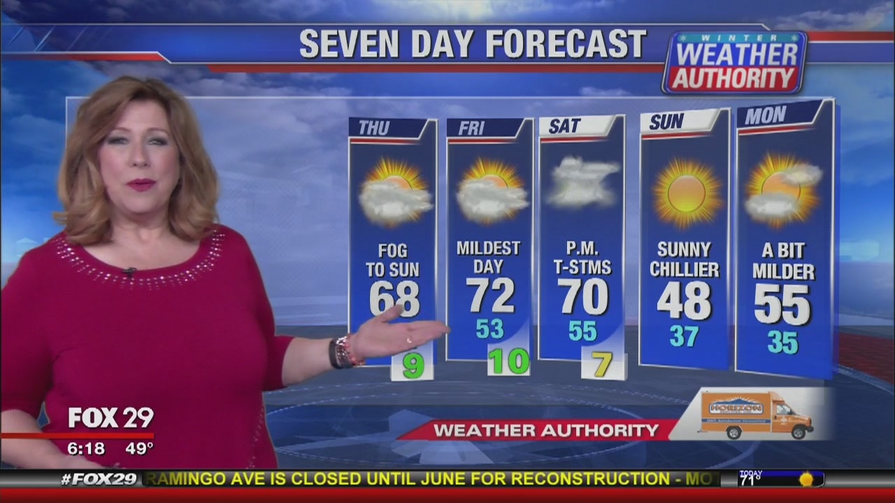 Sue Serio has the Thursday forecast, plus warm then chilly for the weekend