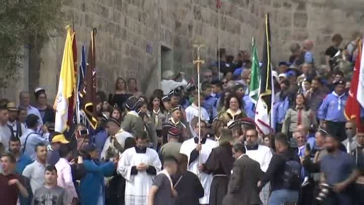 In Jerusalem, tens of thousands of pilgrims from around the world processed, waving palm fronds