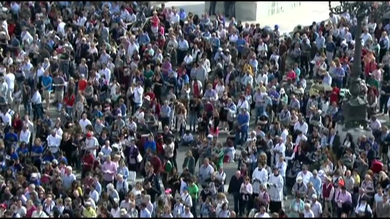 60,000 endured tight security checks and a brief downpour to hear Pope Francis, receive his blessing