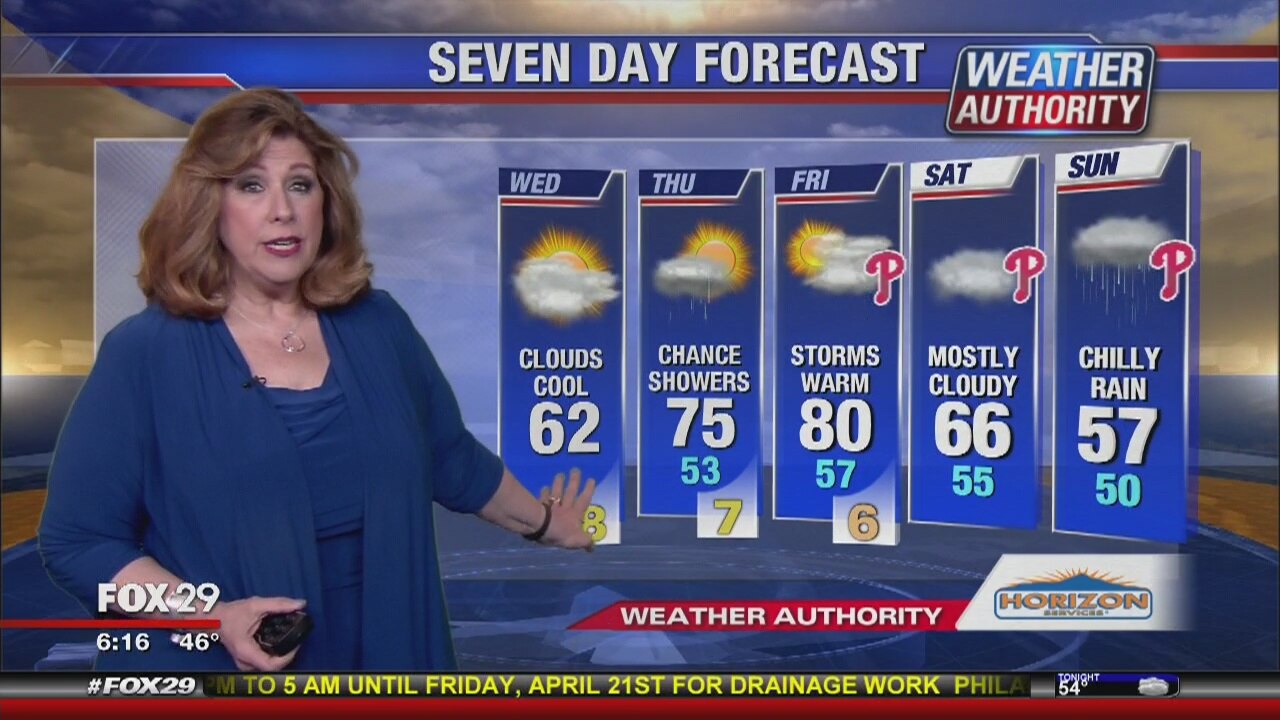 Sue Serio has the Wednesday forecast, plus warmer then cooler in the 7 day roller coaster